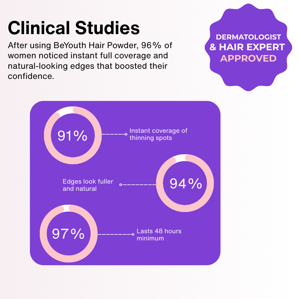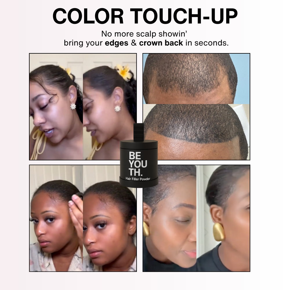 Whether it's gray roots showing 10 days after coloring, widening parts from menopause, or thinning temples that age you instantly: BeYouth works everywhere confidence matters.